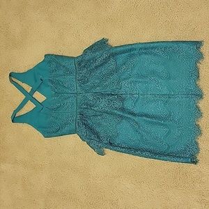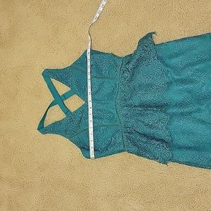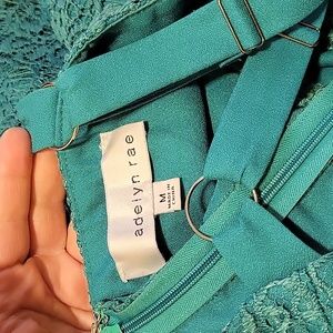 Adelyn Rae emerald green lace dress.
