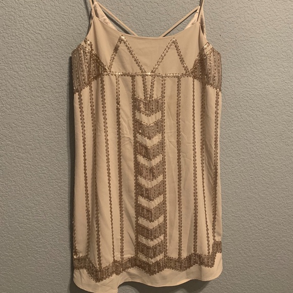 Fun beaded rose colored spaghetti strap dress
