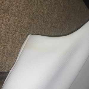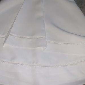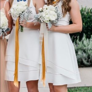 Adelyn Rae Dress; size XS; white dress that layered skirts that are lined with small square openings - two clasps in the back as well as a zipper; only worn once - good condition except for slight yellowing under arms pictured above