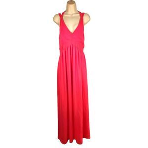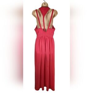 Adelyn Rae Dress Maxi Pink Long Chiffon Backless Halter Flowy Sexy Sheer M