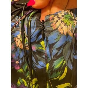 Bring some drama to your next special event in this long-sleeve maxi dress featuring a colorfully vibrant floral pattern and a striking lace-up back.