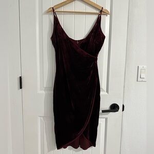 Adelyn Rae Faux-Wrapped Burgundy Velvet Dress