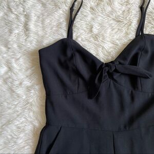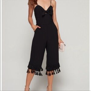 Adelyn Rae black tie-front tassel fringe hem crop jumpsuit