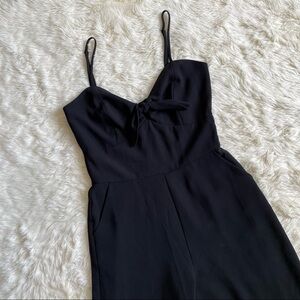 Adelyn Rae Jumpsuit Cropped Tie-Front Tassel Fringe Hem Classic Black S