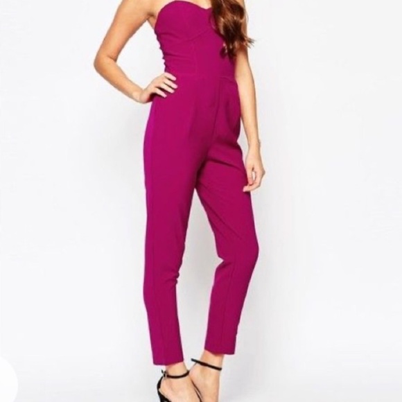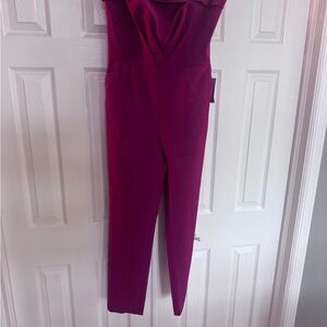 Chic strapless design. Sweetheart neckline. Maroon pink color. Perfect for any event when you want to wear something other than a dress! Love that it has pockets! Very chic!
