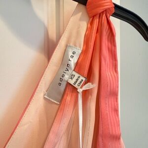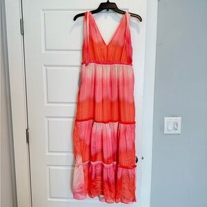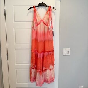 Beautiful watercolor design with orange, pink, and coral shades. Double-lined. Tie straps.
