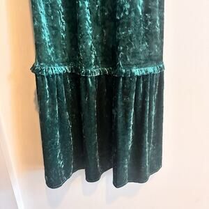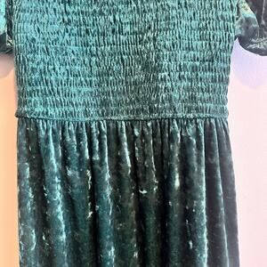 This Adelyn Rae dress is a charming choice for the holiday season, featuring a high neck and puff sleeves with a unique open back design. The dress is made of luxurious velvet fabric in a beautiful green color, adding a touch of elegance to any outfit. The fit & flare silhouette with ruffle accents and a midi length creates a cottage core aesthetic that is both trendy and feminine, perfect for festive occasions. Size XS ensures a flattering fit for a regular size woman looking for a statement piece for special events.