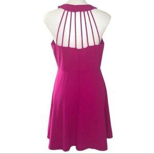 Adelyn Rae Mini Skater Dress, Pink Cage Back Sleeveless Halter Women's Large