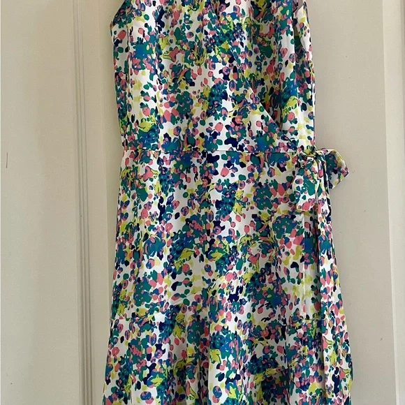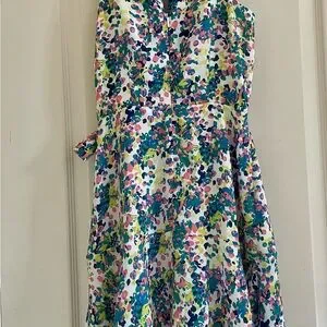 NWOT floral midi ruffle dress with zipper in the back Features a stylish tie waist