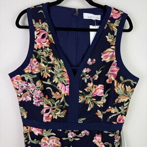 Adelyn Rae Navy Floral Embroidered Fit Flare Dress XL Sleeveless NWT Wedding
