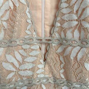 Gorgeous lace dress. In excellent condition! Fully lined. Hidden back zipper. Low V neckline. No size but is a size small.