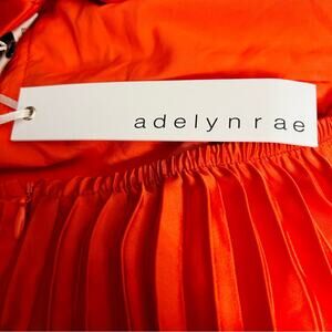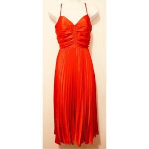Adelyn Rae Pleated Skirt Ruched Bodice Satin Midi Dress Orange Small NWT