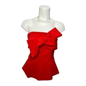 Adelyn Rae Red Strapless Peplum Top Bow sz Small