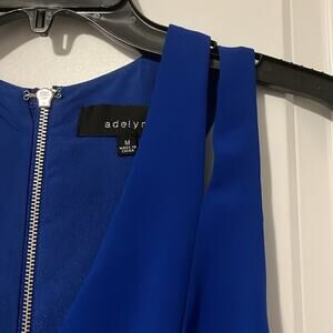 Adelyn Rae Royal Blue Cocktail Dress, size Medium. Sleeveless, v-neck, faux wrap skirt, princess seams, fully lined, exposed back zipper, side pockets, racerback style.