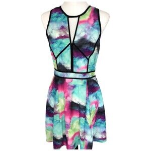 Adelyn Rae Sleeveless Watercolor Fit and Flare Mini Cocktail Dress Size S
