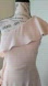 This elegant one-shoulder dress features a soft peach color, perfect for any occasion. The stylish ruffle design adds a touch of sophistication. The top of the bodice has a grippy band to hold it in place. Zipper is on the side.