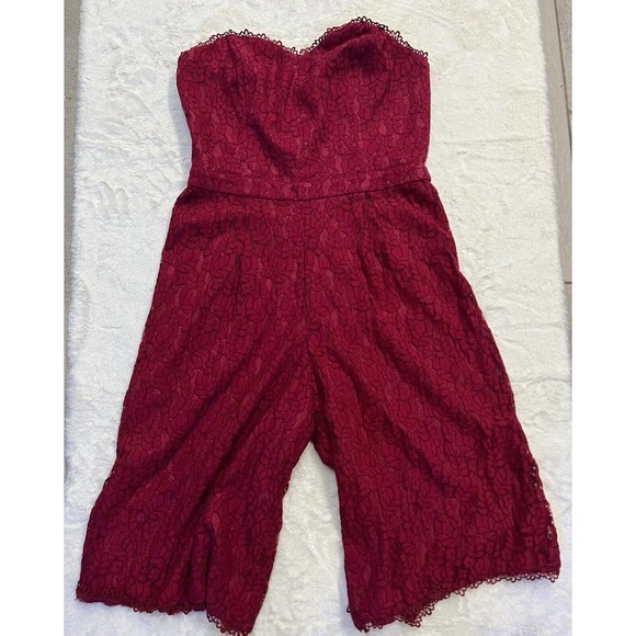 Adelyn Rae Strapless Raspberry Eyelet Lace Romper Size - Large