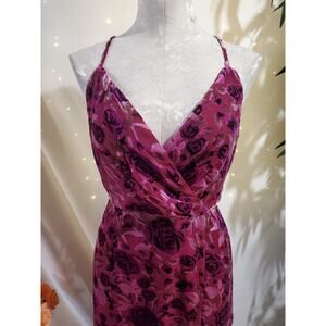 Adelyn Rae Velvet Burnout Floral Slip Dress Size L Pink Fairy Grunge Whimsigoth