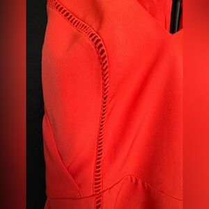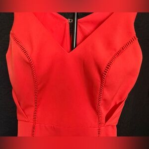This elegant red sleeveless dress is perfect for any occasion. Its vibrant color and stylish design make it a must-have in your wardrobe. Features unique stitching details and an open back panel with clasps. Unique and gorgeous, only worn once.
