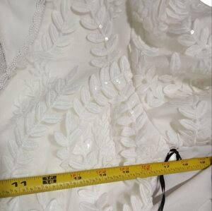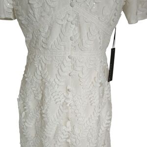 Adelyn Rae White Embroidered Lace Midi Dress Women’s Puff Sleeve V-Neck Cocktail
