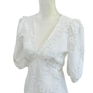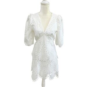 Adelyn Rae Women’s Small White Lace Scalloped Cut Out V-Neck Minidress NWT $158