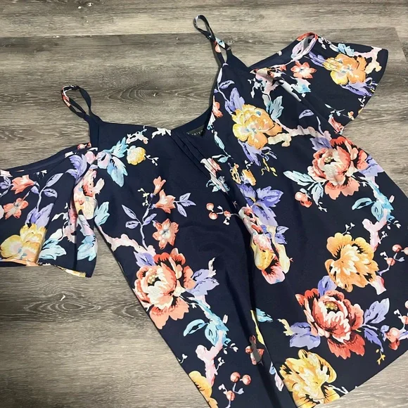 Adelyn Rae floral open shoulder top