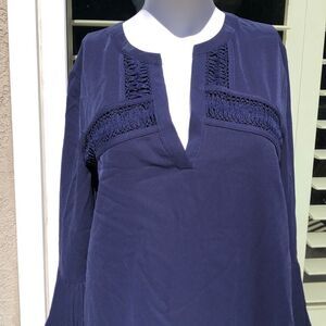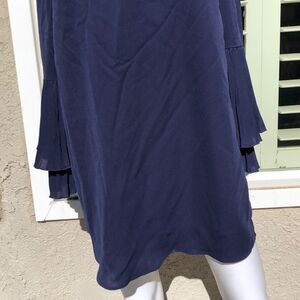 Turn on the charm in this easy-to-wear shift styled with tiered, pleated cuffs and a high/low shirttail hem. NEW WITH TAGS