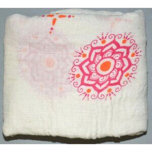 Aden + Anais Mandala Print Baby Swaddle Blanket Orange Pink White Bamboo Gauzy