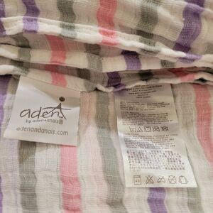 Aden + Anais Purple, Gray, and Pink Stripe White Baby Blanket, 100% Cotton Muslin, 2013