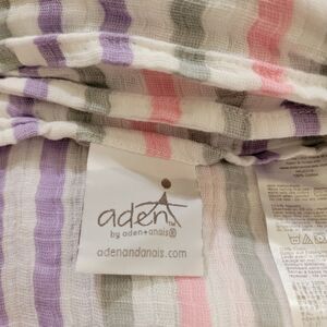 Aden & Anais Muslin Baby Blanket White Purple Gray and Pink Stripe Swaddle 2013