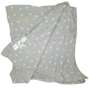 Aden + Anais Stars Gray Muslin Swaddle Wrap Baby Blanket 44" X 43"