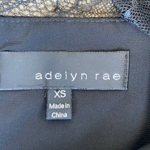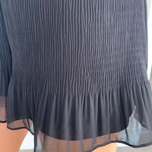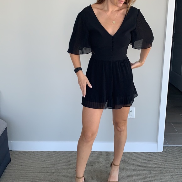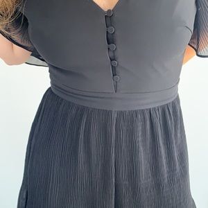Adelyn Rae black romper 30 inches Bell sleeve flirty skirt Zip back with lace detail Model is 5’8