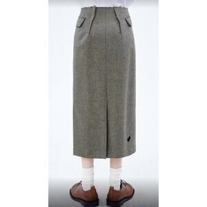 Ader Error Roxie Khaki Green Wool Deconstructed Button Front Midi Skirt S
