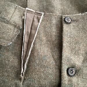 100% Wool in an Olive Khaki Green Tweed with shades of blue and gray