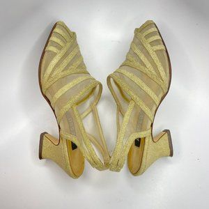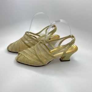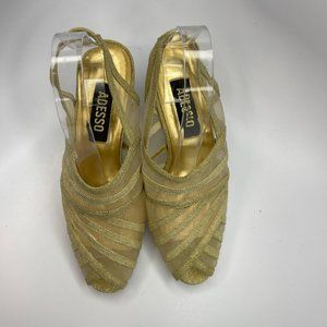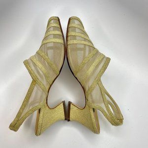 Adesso Gold Linen and Mesh Heeled Sandals Sz 9
