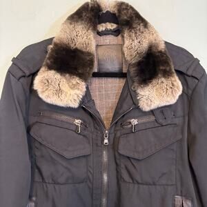Adhoc Sport Utility Jacket Mens L/XL Black Fur Collar Pockets Full Zip Outdoor