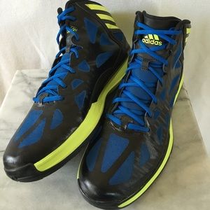 Adidas Crazy Shadow! In Excellent condition, have hardly been worn. Black and blue with bright neon lime green, these look ELECTRIC!! They don't have the original insoles however I've replaced them with blue Fila insoles that match the blue on the shoe perfectly. Thanks!