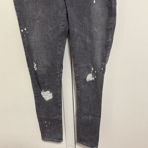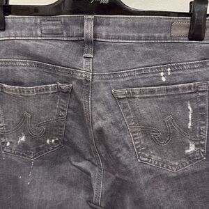 AG Gray Distressed super skinny legging ankle jeans. Zipper & button front closure, 5 pocket style.