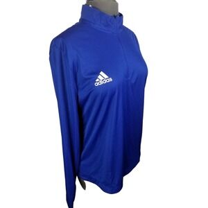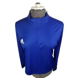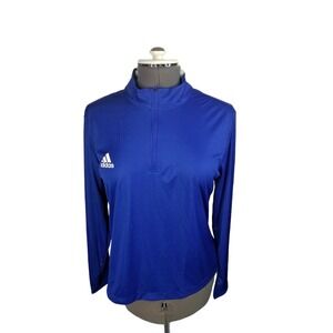 Adidas 1/4 Zip Knit Long Sleeve Blue Shirt Women's Size Medium pit to pit 20 in