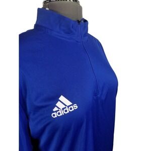 Adidas 1/4 Zip Knit Long Sleeve Shirt Size Large, ARMPIT TO ARMPIT 22 INCHES, LENGHT 24 INCHES, Blue NWT. New with tags. See all the pictures before buying. Pet free smoke free home. Fast shipping.