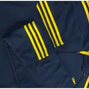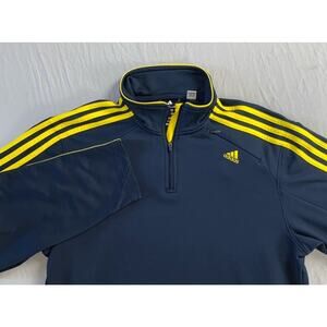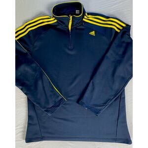 Adidas 1/4 Zip Pullover Athletic Sweatshirt, Navy, Yellow 3-Stripe. Men's XL EUC