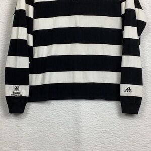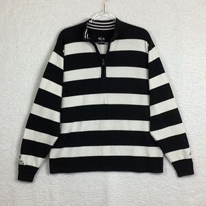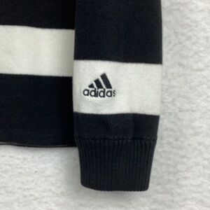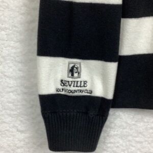 Adidas Golf 1/4 Zip Pullover Mock Neck Sweater, men’s size large. Perfect for the chilly mornings on the course. Seville Golf & Country Club embroidered on the sleeve. Black and white wide stripes, 100% cotton. EUC