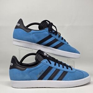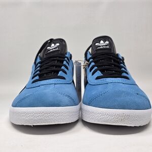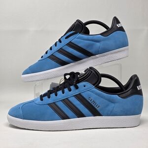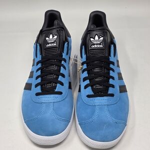 Stylish Adidas Gazelle sneakers in blue and black. Features classic three stripes design.