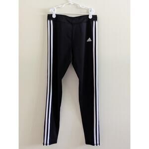 Adidas 3 Stripe Tights Pants Girls Sz XL/16 Climalite Black White Stripes