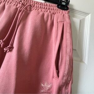 Adidas 3D Trefoil Sweatpants Oversized Cozy Fleece Metallic Stripe Pink Coral XS