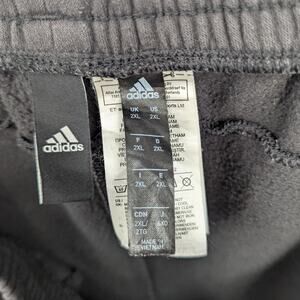 These Adidas 3-Stripes shorts (size 2XL, see measurements below) offer a soft and comfortable option, ideal for lounging, training, or casual wear. Featuring the iconic triple side stripes, an elastic waistband with drawstring, and two hip pockets for functionality. The classic black color and relaxed fit make them a versatile staple for workouts or everyday comfort. Features adjustable drawstring closure for maximum comfort.
