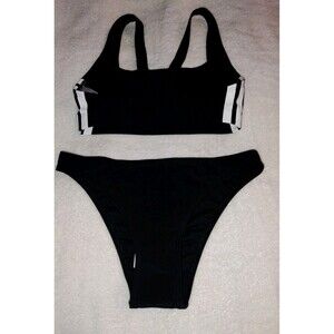 Adidas 3-Stripes V-Back Black Bikini Women's Size 4