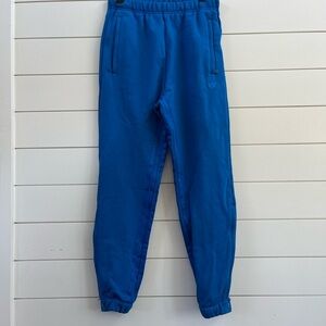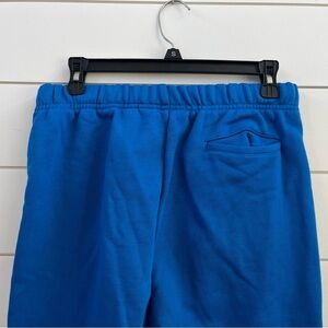 Experience comfort and style with these Adidas blue track pants, featuring a relaxed fit and elastic cuffs for a modern jogger look. The vibrant blue color and soft fabric make them perfect for both casual outings and athletic activities.
