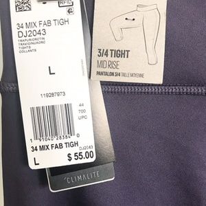 NWT Adidas 3/4 tight mid crop training pants. greyish purple color. 2 available.