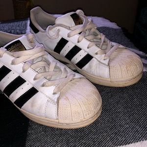 Well loved shoes. Are size 8 but run large, I’m typically a 9 or 9.5 depending on the brand. Can use a good wash but other than that, they’re in pretty great condition!